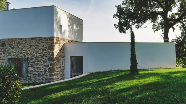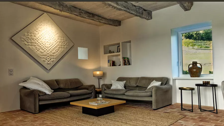 - De larges baies vitrées qui donnent sur un paysage vallonné et apaisant