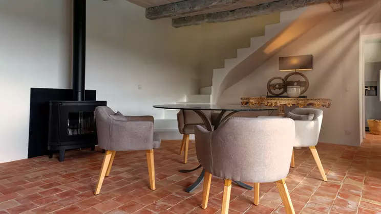 Le gîte de la Cubane, c’est le mélange harmonieux d’une architecture contemporaine aux lignes épurées et de matériaux anciens (tommettes de récupération, poutres centenaires…).